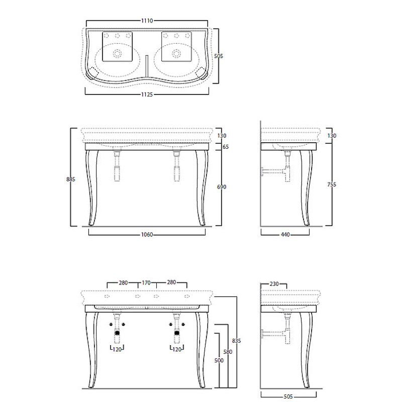 Консоль под раковину Simas Lante 120 LAM120 bi Белая