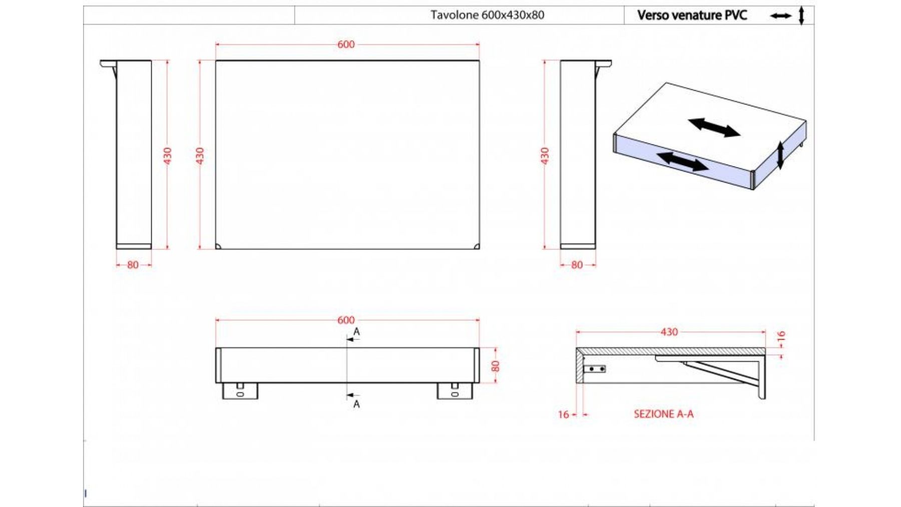 Консоль подвесная Cezares 60x8 Rovere tabacco Tavolone 41579