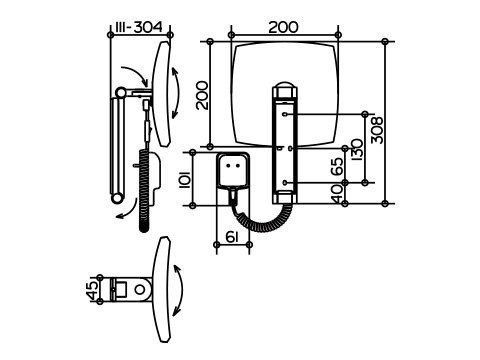 Keuco iLook_move 17613 019001 Косметическое зеркало с подсветкой, настенная модель на кронштейне с шарниром, регулируется в трех плоскостях, одностороннее зеркало, вогнутое, подсоединение к электропитанию через трансформатор со штекером (100-240 B), со спиралевидным кабелем (400 мм) и выключателем, фактор увеличения x 5. Подсветка: 1 x 4,5 Вт светодиод (не требующая замены лампа!!!). Расход в режиме ожидания: < 0,5 Вт. Цвет подсветки: 6000 Кельвин (дневной). Внешний размер: 200 x 200 мм.