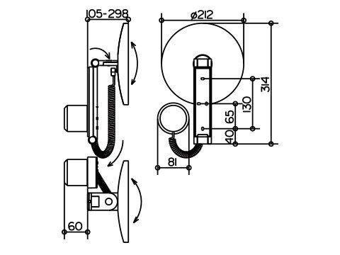 Keuco iLook_move 17612 019000 Косметическое зеркало с подсветкой, настенная модель на кронштейне с шарниром, регулируется в трех плоскостях, одностороннее зеркало, вогнутое, подсоединение к электропитанию через через встроенный в стену трансформатор (230 В ) и спиралевидный кабель (400 мм), фактор увеличения x 5. Подсветка: 1 x 4,5 Вт светодиод (не требующая замены лампа!!!). Расход в режиме ожидания: < 0,5 Вт. Стеклянная сенсорная панель управления. Цвет подсветки: от 3200 Кельвин (теплый белый) - 6000 Кельвин (дневной свет). Цвета подсветки настраиваются индивидуально. Диаметр: 212 мм. Внимание: для установки и встройки трансформатора в стену необходима обычная коробка под эл. розетку (68 мм диаметром).