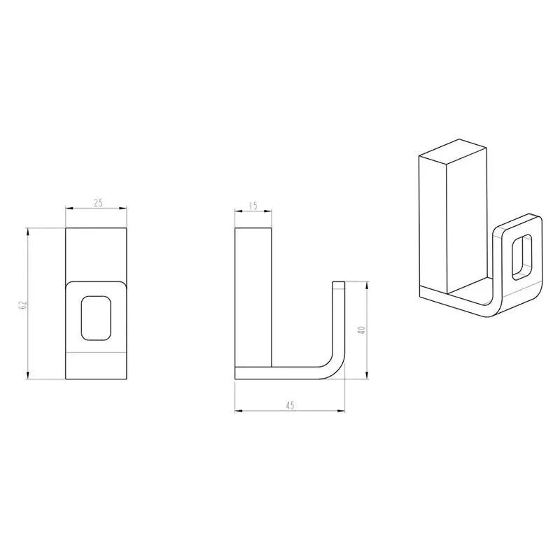 Модель имеет квадратную форму, что перекликается с геометрическим минимализмом коллекции Q от Boheme. Прочное крепление обеспечивает надёжную фиксацию на стене, выдерживая ежедневные нагрузки — будь то махровое полотенце, халат или аксессуары для душа. Благодаря компактности и нейтральной палитре, крючок органично впишется в современный, классический или скандинавский интерьер.