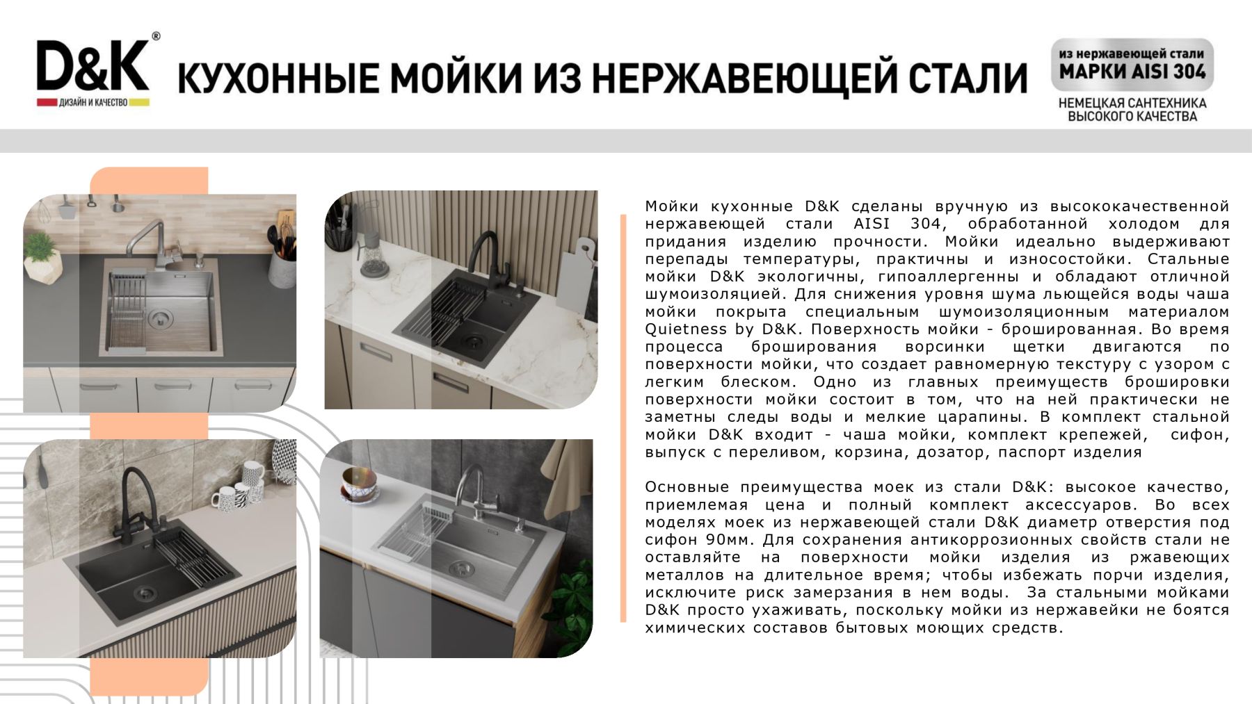 Стальные мойки DQ экологичны, гипоаллергенны и обладают отличной шумоизоляцией.