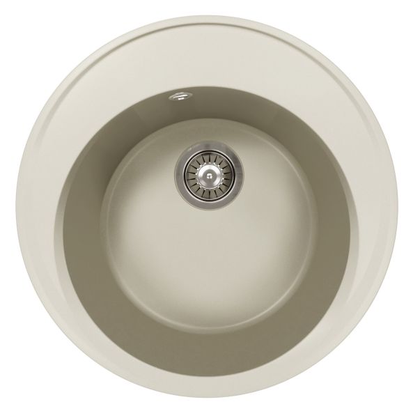 Круглая мойка с большой чашей для кухонного шкафа 45 смМатериал — кварцевый композитПредусмотрены дополнительные отверстия для установки аксессуаровГабариты нетто ( ДхШхВ) 510х510х217 мм