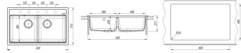 - Двухчашевая мойка из серии «Липси»;