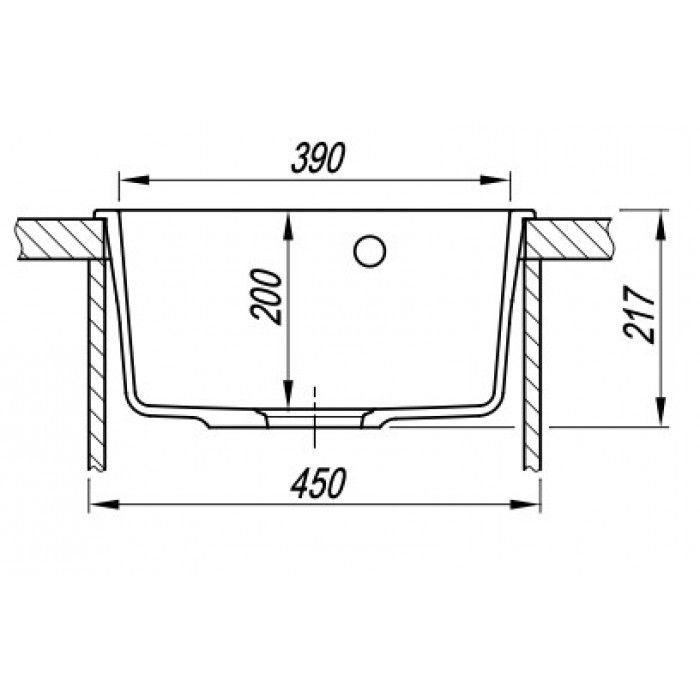 Прямоугольная мойка с небольшой чашей для кухонного шкафа 45 см