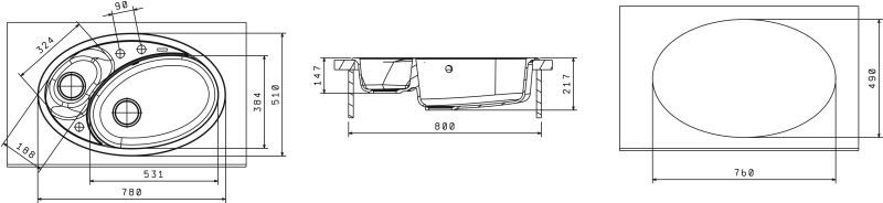 • Отверстия под смеситель: