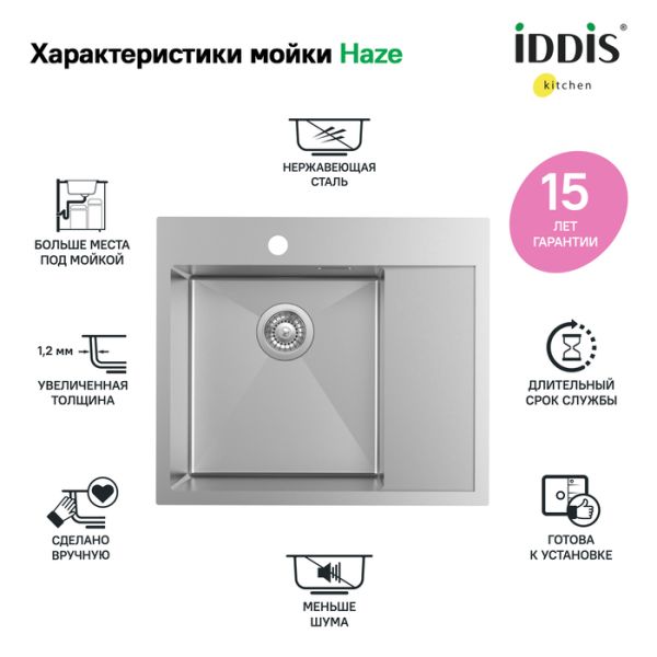 Кухонная мойка IDDIS Haze HAZ59SLi77 левая 59см сталь купить