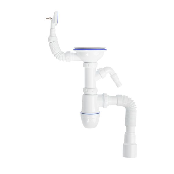 Сифон с отводом для стиральной/посудомоечной машины с обратным клапаном и гофрированными отводами для удобства подключения.