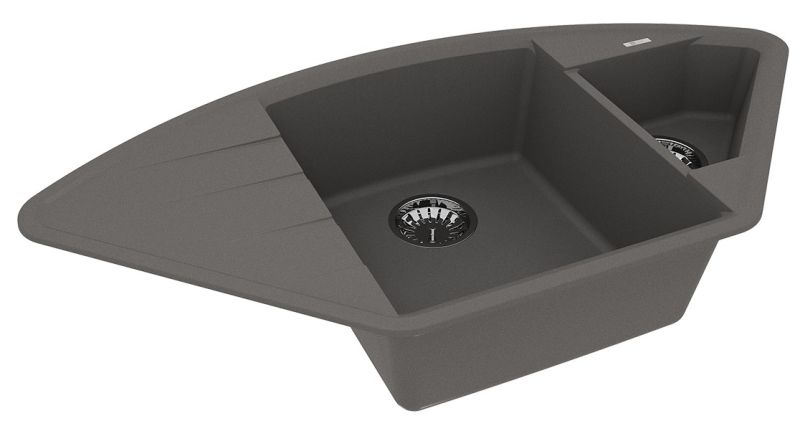 Благодаря своей форме, мойка подойдет как для кухонного гарнитура с подводкой воды в одном из углов помещения, так и для стандартного размещения в прямом шкафу. Эргономичная мойка с дополнительной чашей, которую можно использовать для мытья овощей и фруктов или для размораживания продуктов.