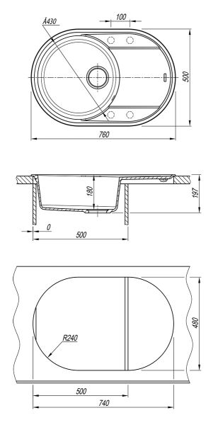 Универсальная версия овальной формы мойки с оборачиваемым крылом позволяет использовать различные пространства кухни.