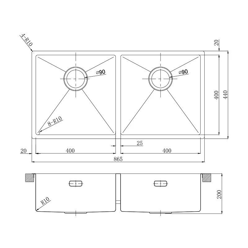 Гарантийный срок: 15 летВнимание! Кухонные мойки из нержавеющей стали серии OZERA идеально сочетаются с кухонными смесителями и дозаторами серии EXPERT в аналогичных цветах.PRORAN 900-Кухонная мойка с двумя чашами это идеальное решение для современных кухонь, где функциональность и дизайн играют ключевую роль.