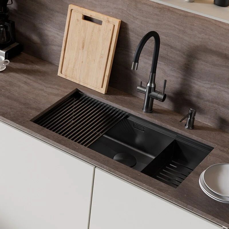Кухонная мойка Lemark Tabaga 820 9932136 в комплекте с разделочной доской ролл-матом и коландером чёрный матовый купить