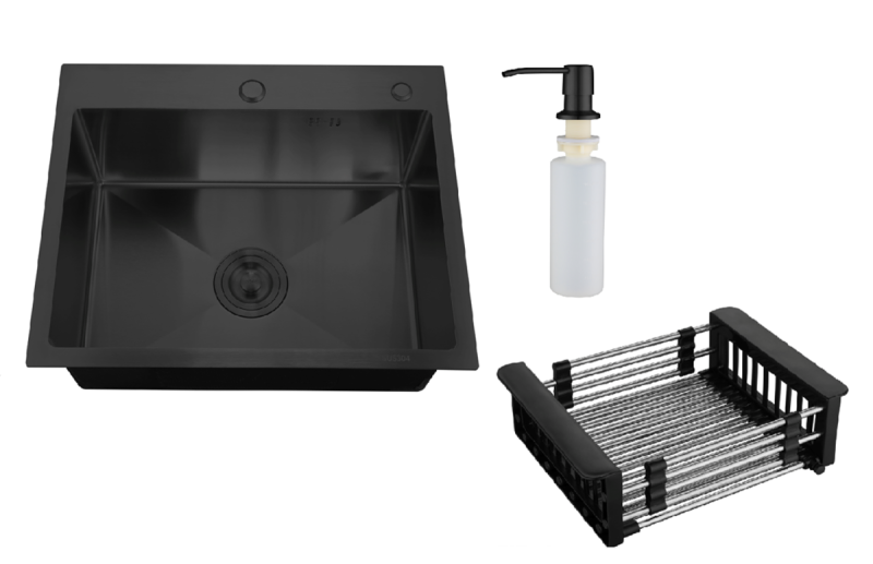 Набор 3 в 1 РМС (кухонная мойка+ корзина раздвижная+ дозатор врезной).В комплекте: евросифон высокого качества.Металлические элементы изготовленны из нержавеющей стали.Гофра с универсальным выходом 40/50. Цвет: воронёная сталь.Размер: 500*500 мм.Глубина: 200 мм.Толщина: 1-3 мм