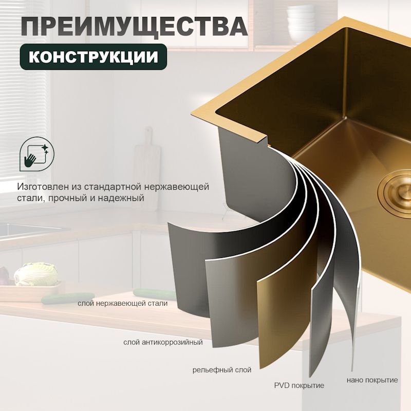 Кухонная мойка Splenka S700.5045.03, золотой сатин. Размер - 500*440*220мм. Кухонные мойки Spl... Подробнее