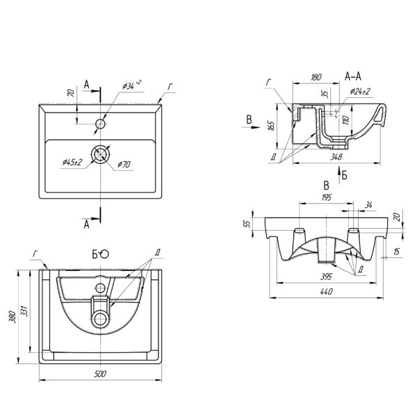 Мебельная раковина Dreja Мини-50 СК 641594 50 см цвет белый