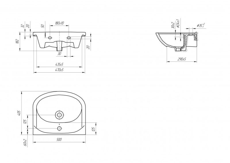 • Отверстия под смеситель: