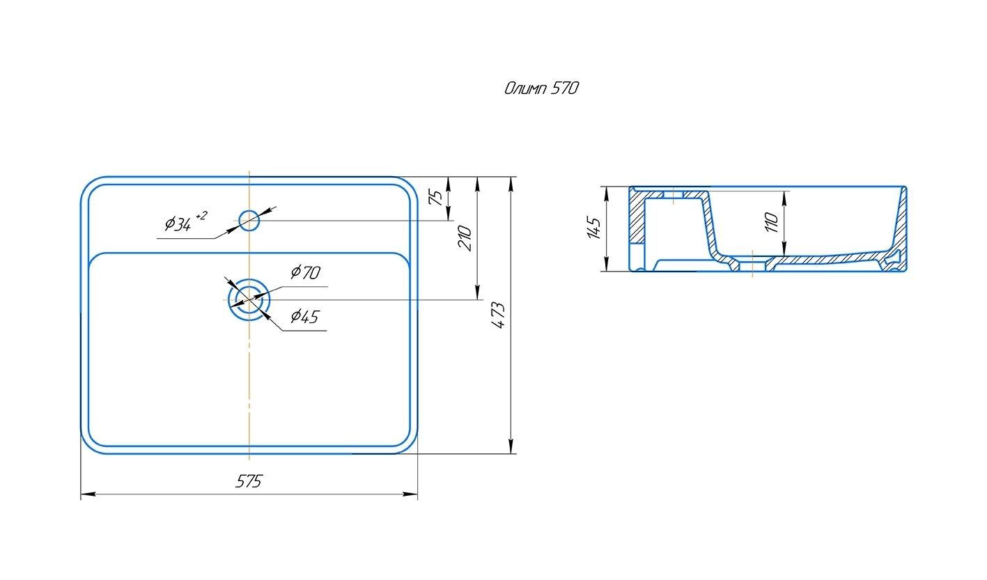 Раковина устанавливается на столешницу, хромированное кольцо для переливного отверстия в комплекте.