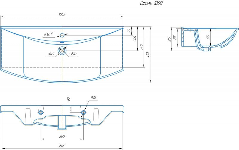 Размер в упаковке, мм (ШxГxВ): 1095x523x245