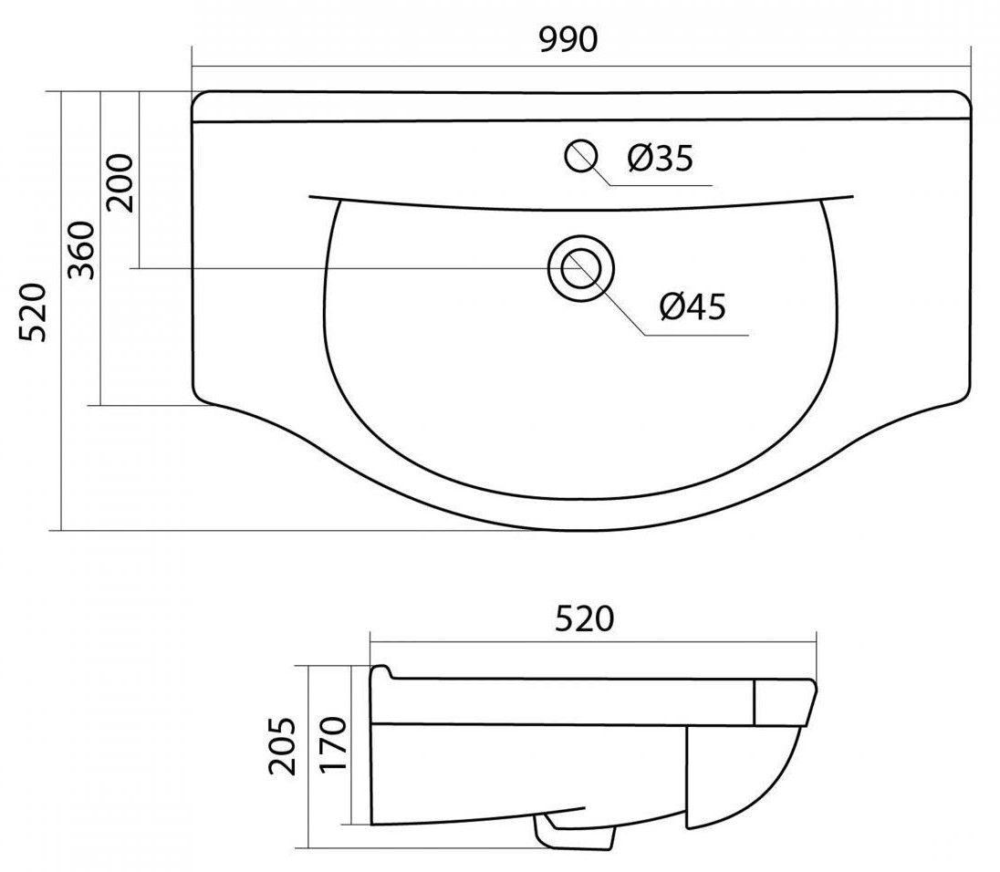 Керамическая раковина Santek ЭЛЬБРУС 100 отличается удобной округлой формой, высоким качеством исполнения, практичностью и функциональностью. Дополнительные бортики обеспечивают место для размещения необходимых мелочей, а встраиваемая в мебельную тумбу конструкция создает дополнительное пространство для хранения.