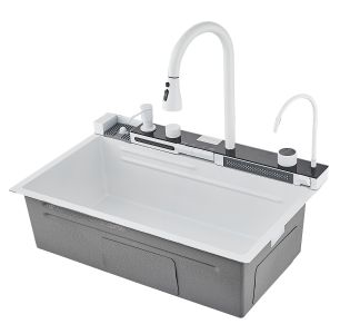 Многофункциональная кухонная мойка Savol S-SC001W с водопадом 75см белый купить