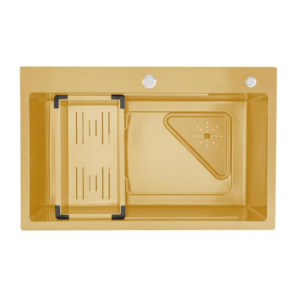 Мойка для кухни Gappo GS7246-3 с коландером золотой сатин купить