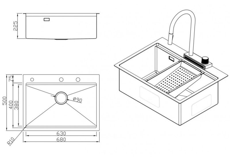 Мойка для кухни Milacio Denia 68 Steel MC.77410 в комплекте со смесителем и коландером нержавеющая сталь