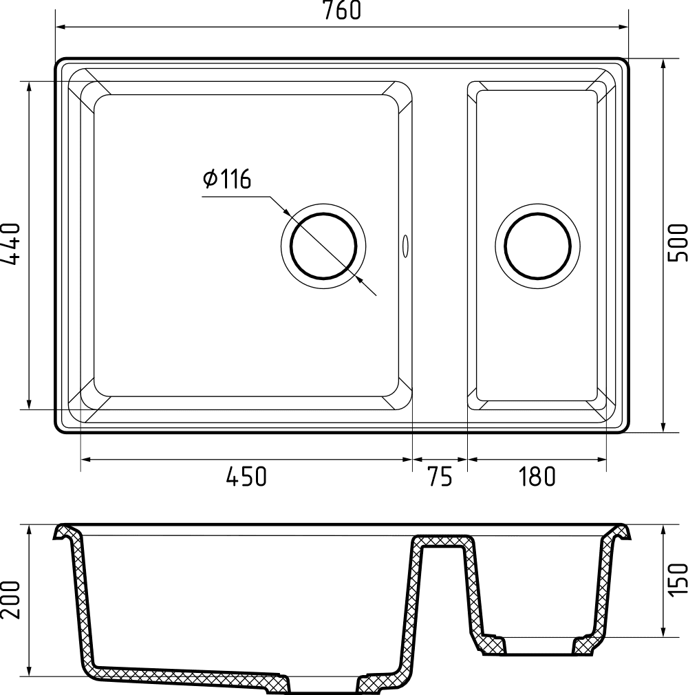 Мойка кухонная GranFest LEVEL LV-760K песочный