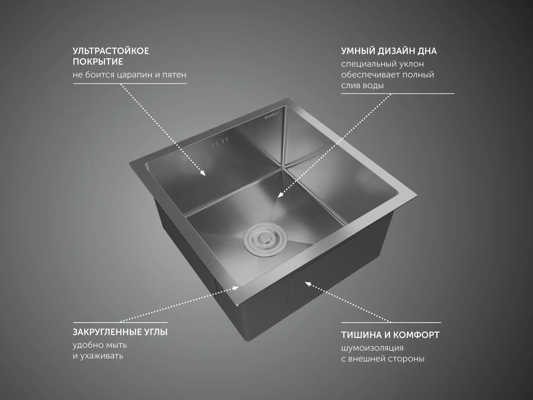 Мойка кухонная GranFest 4444 нерж Нержавеющая сталь