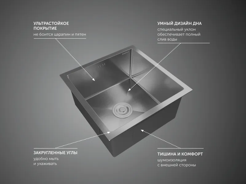 Мойка кухонная GranFest METAL 4444 нерж Нержавеющая сталь
