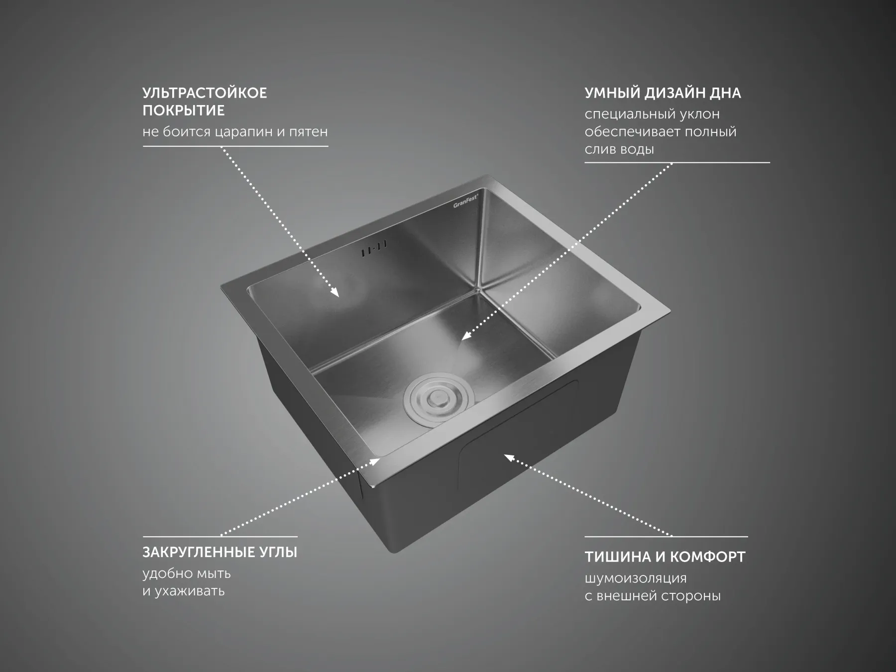 Мойка кухонная GranFest 4538 нерж Нержавеющая сталь