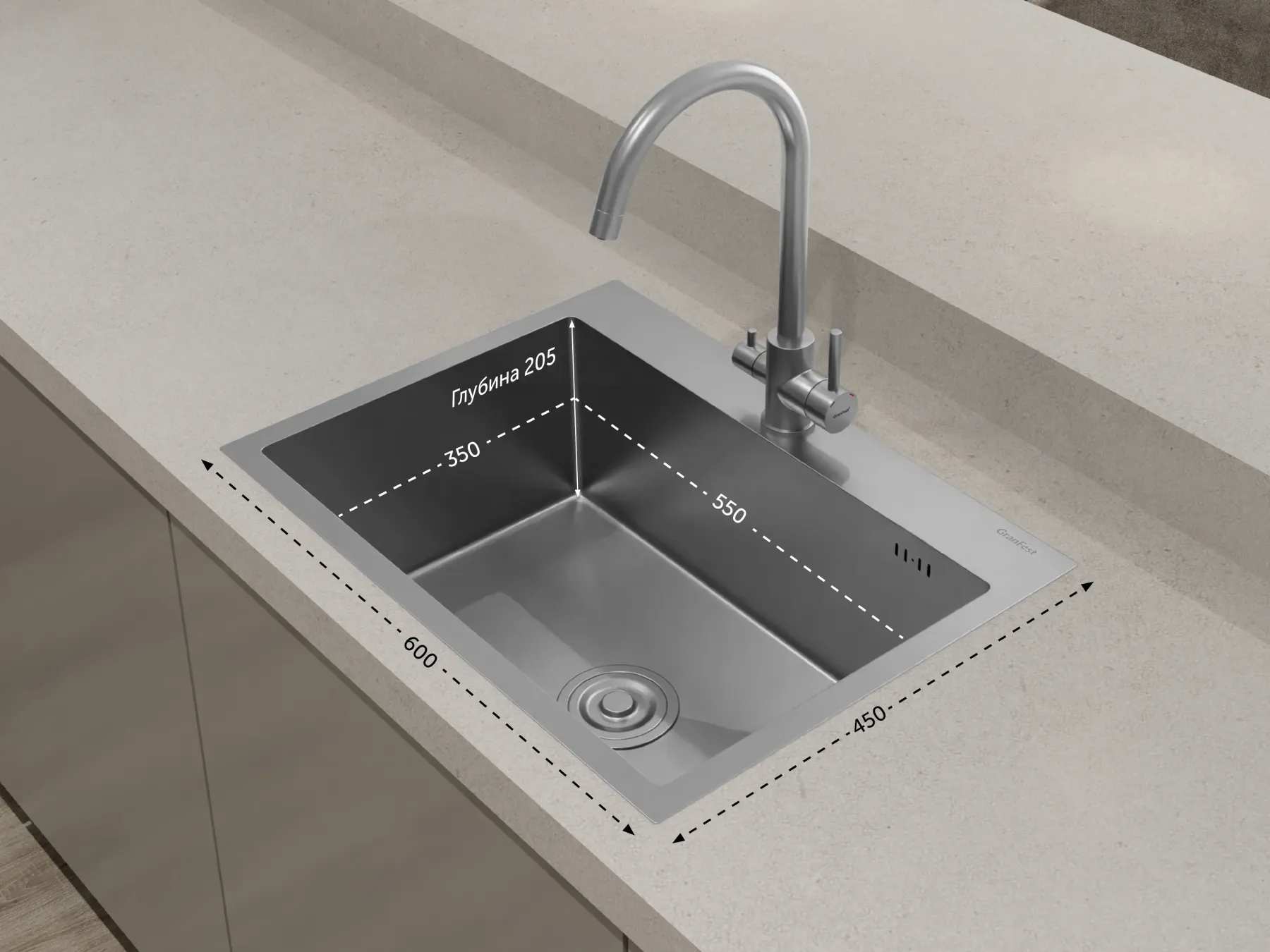 Мойка кухонная GranFest METAL 6045 нерж нержавеющая сталь