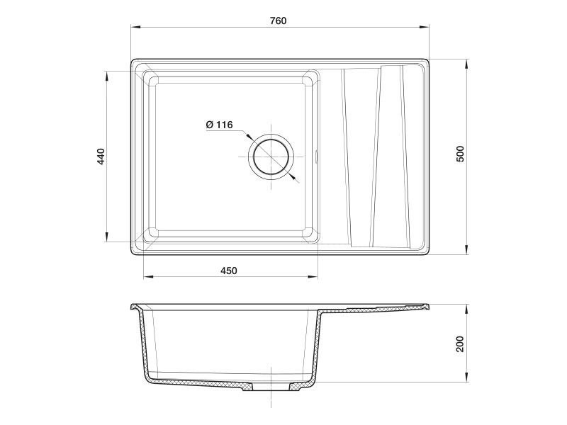 Мойка кухонная GranFest Серая Level LV--760 L сер