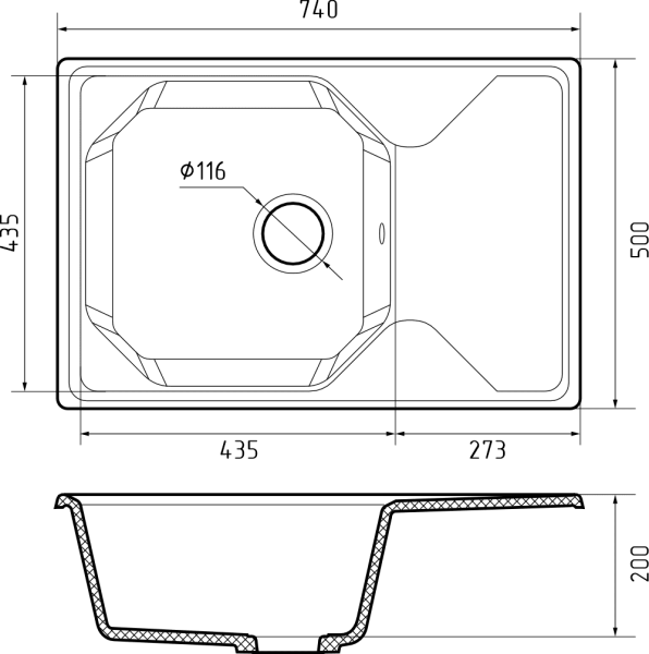 Мойка кухонная GranFest UNIQUE U-740L графит