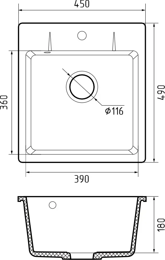 Отверстия под смеситель:нет