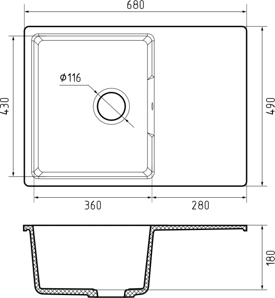 Комплектация: сливная арматура с корзинчатым вентилем (Ø 3.5""/90 мм), тех.паспорт, гарантийный талон."