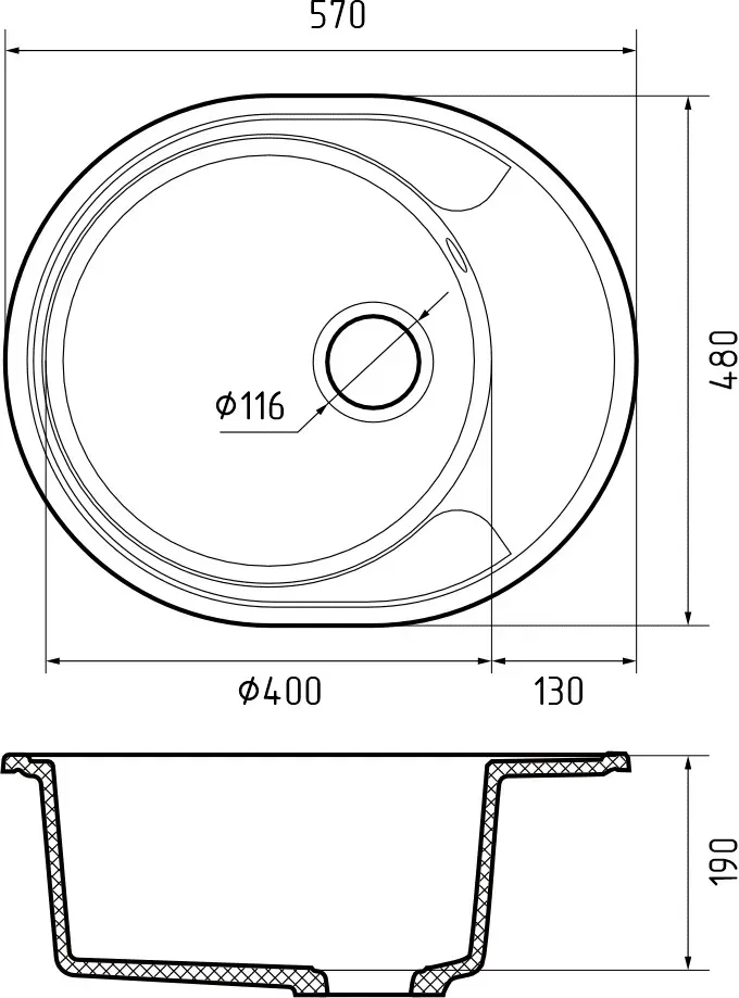 Комплектация: сливная арматура с корзинчатым вентилем (Ø 3.5""/90 мм), тех.паспорт, гарантийный талон."