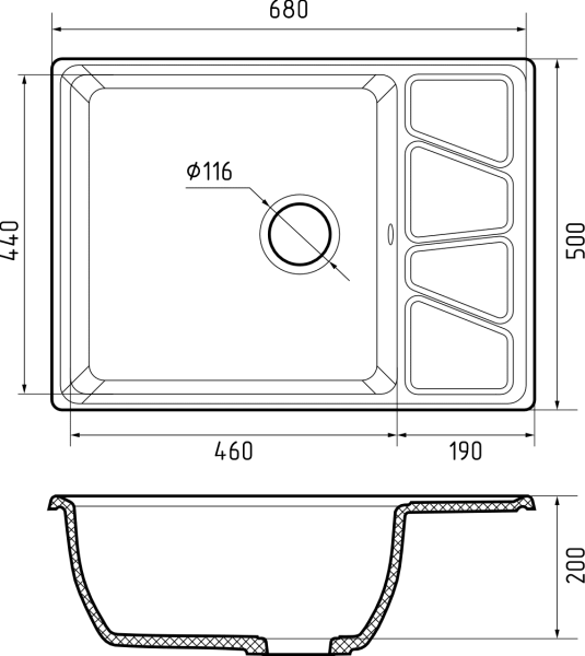Мойка кухонная GranFest VERTEX V-680L графит