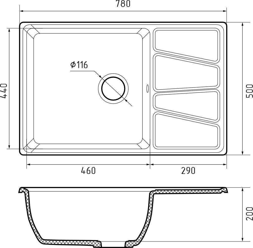 Общий размер: 780 * 500 мм