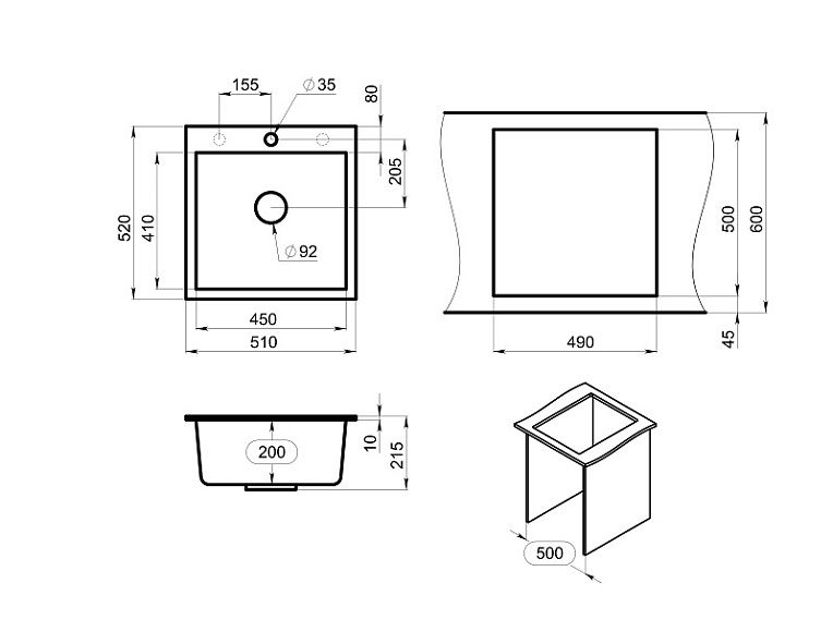 Мойка кухонная Granula 5102, ШВАРЦ