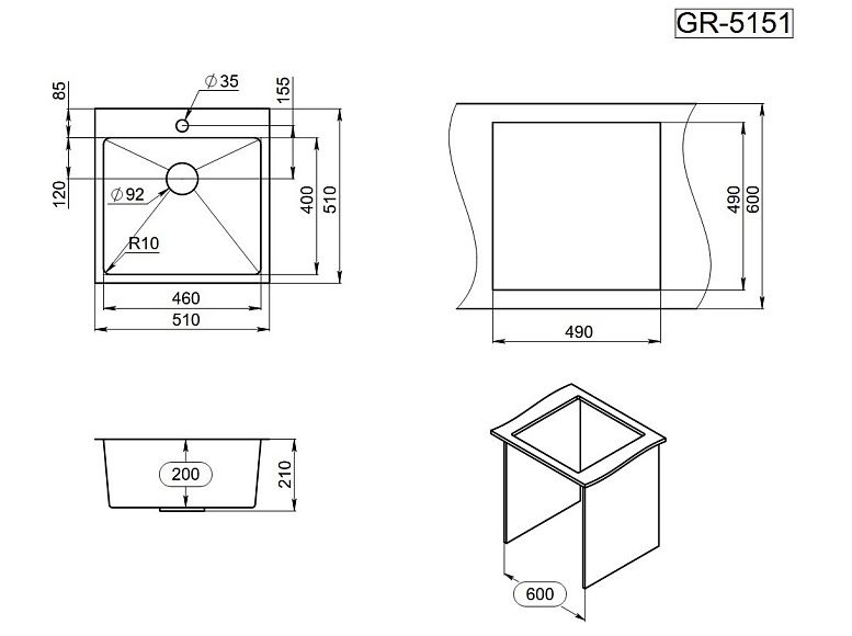 Мойка кухонная Granula 5151, СТАЛЬ САТИН Подробнее