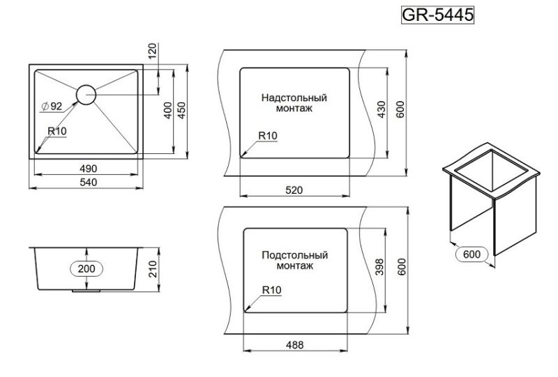 Мойка кухонная Granula 5445U, СТАЛЬ САТИН Подробнее