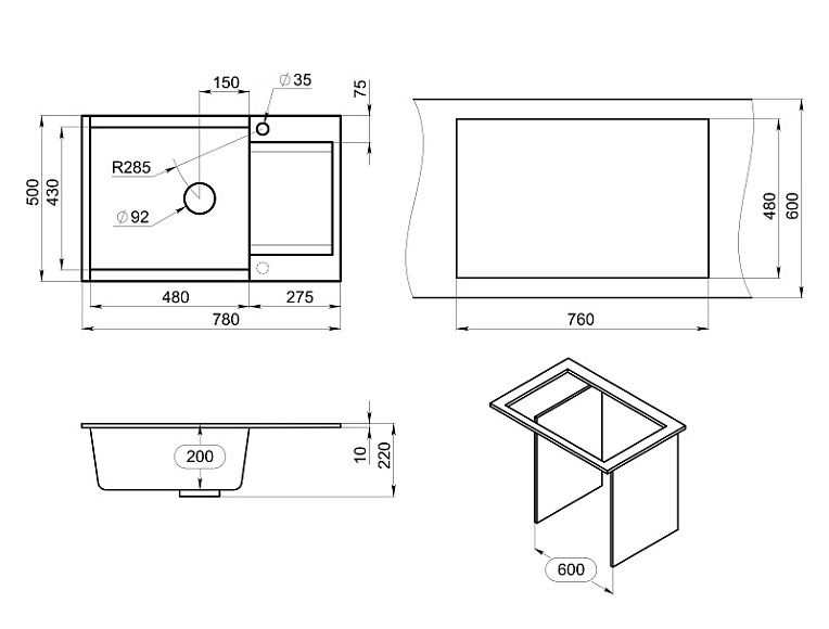 Мойка кухонная Granula 7807, ЧЁРНЫЙ Подробнее