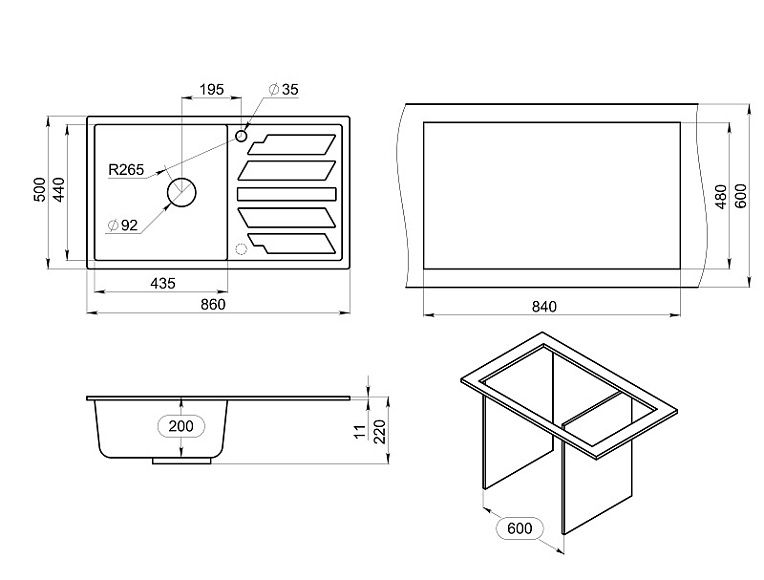 • Отверстия под смеситель: