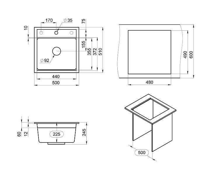 Мойка кухонная Granula Kitchen Space 5002, АЛЮМИНИУМ Подробнее