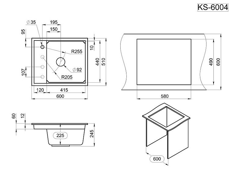 Мойка кухонная Granula Kitchen Space 6004, АРКТИК Подробнее
