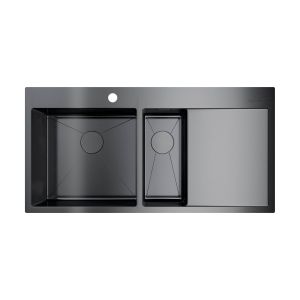 • Гарантия на мойки из нержавеющей стали с PVD-покрытием: 15 лет; • Метод производства: ручное; • Оригинальный цвет: вороненая сталь; • Мойка для врезного монтажа; • Японская высококачественная хромоникелевая нержавеющая сталь с покрытием PVD; • Матовая полировка, устойчивая к появлению царапин; • Упаковка обеспечивает максимально безопасную транспортировку. Мойка упакована в пакет из нетканного материала, уголки из пенопласта, картонную коробку; • Корпус мойки обработан специальным шумоподавляющим составом. • Комплектация: крепление, донный клапан, выпуск, сифон.
