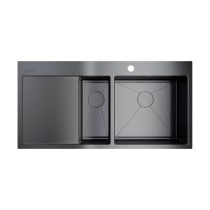 • Гарантия на мойки из нержавеющей стали с PVD-покрытием: 15 лет; • Метод производства: ручное; • Оригинальный цвет: вороненая сталь; • Мойка для врезного монтажа; • Японская высококачественная хромоникелевая нержавеющая сталь с покрытием PVD; • Матовая полировка, устойчивая к появлению царапин; • Упаковка обеспечивает максимально безопасную транспортировку. Мойка упакована в пакет из нетканного материала, уголки из пенопласта, картонную коробку; • Корпус мойки обработан специальным шумоподавляющим составом. • Комплектация: крепление, донный клапан, выпуск, сифон.