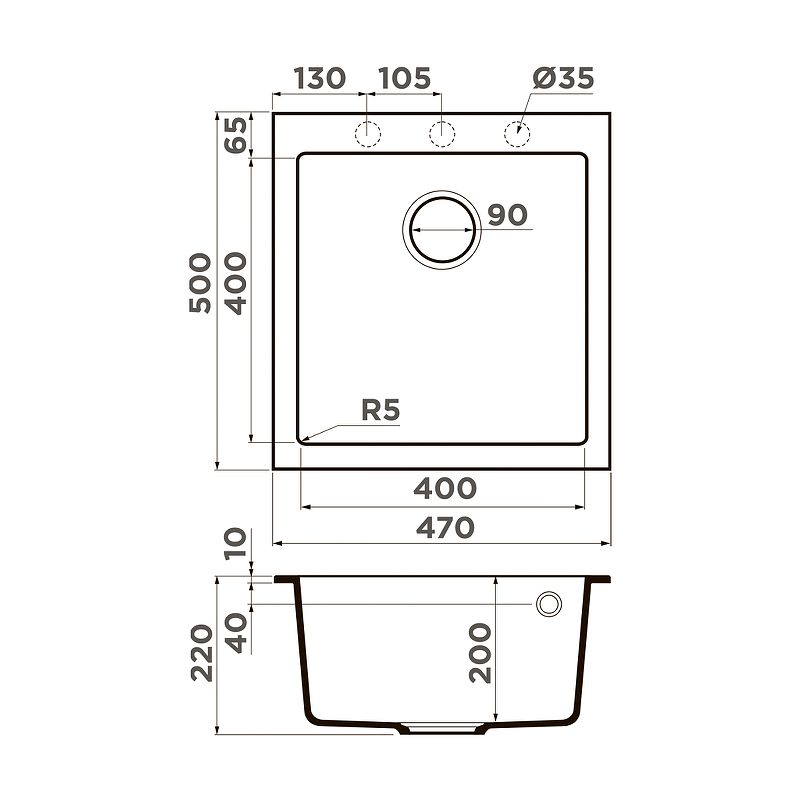 • Отверстия под смеситель: