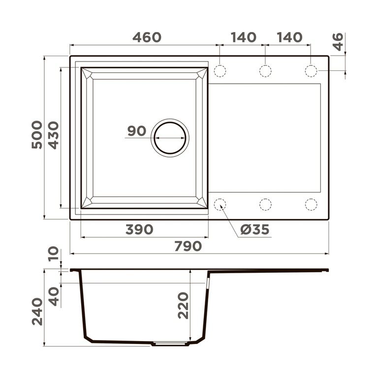 Отверстия под смеситель:нет