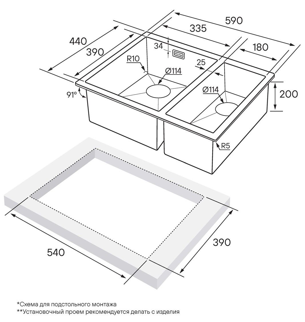 Мойка кухонная из нержавеющей стали, артикул PM545944-BGL304-ая аустенитная нержавеющая сталь имеет низкое содержание углерода. В составе мойки содержится 18% хрома и 8% никеля, что делает данную мойку из нержавеющей стали не подверженной деформации и обеспечивает прекрасные эксплуатационные характеристики.Мойки ANNEX в оттенках BG и GM имеют прочное PVD покрытие, которое нанесено на нержавеющую сталь. Оно особенно устойчиво к появлению царапин и истиранию, не содержит микротрещин и является экологически чистым.Имеет шумопоглощающее покрытие Stille® на внешней стороне чаши;